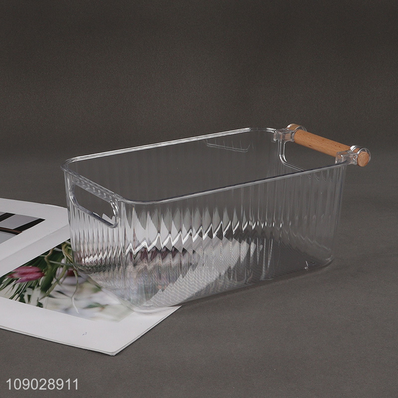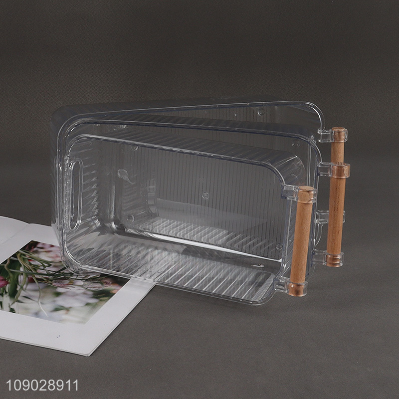 Good Quality Plastic Refrigerator Organizer Bins with Wooden Handle for Kitchen