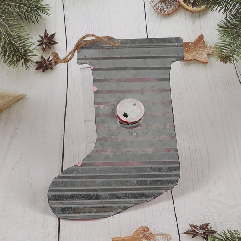 Factory Price Light Up Metal Stocking Ornaments for Christmas Tree Decorations