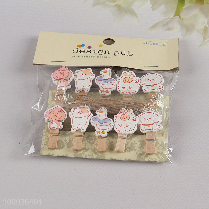 Online Wholesale 10PCS Cute Cartoon Wooden Clothespins Small Photo Memo Clips