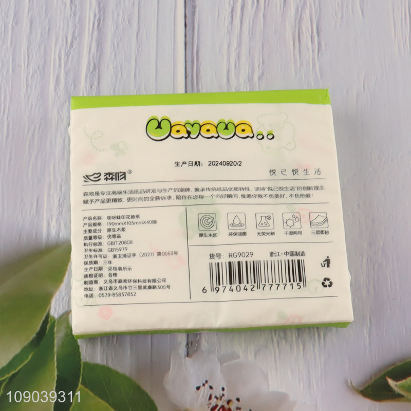 Best quality cartoon printed 40pcs wood pulp tissue facial tissue