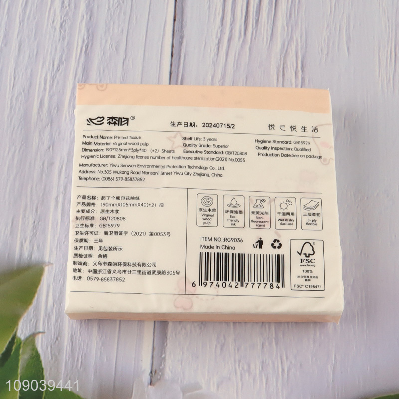 Good quality printed 40pcs wood pulp facial tissue napkin for sale