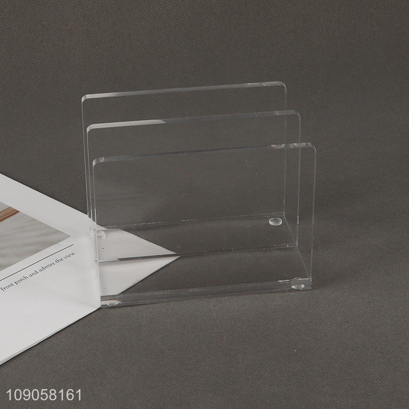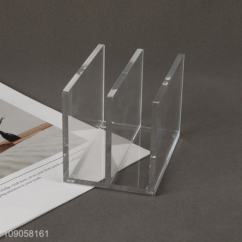 Best sale 3 compartments clear acrylic desk organizer notebook book shelf