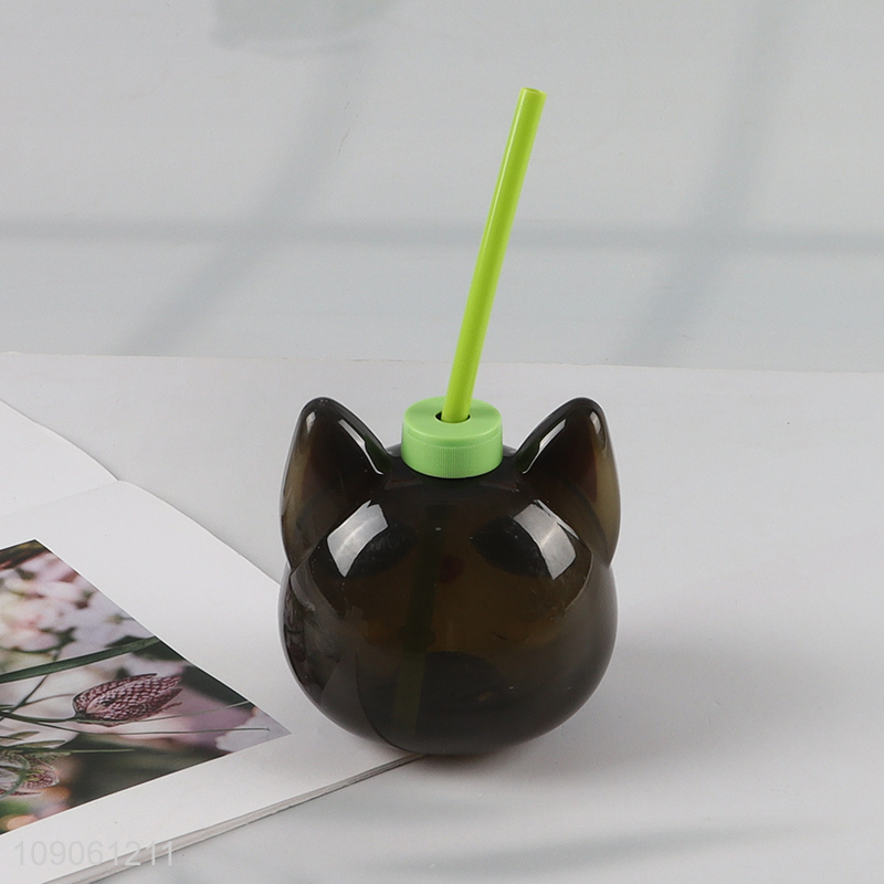 Hot products black cat shape portable cartoon drinking cup with straw