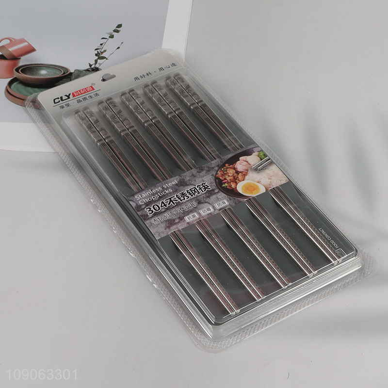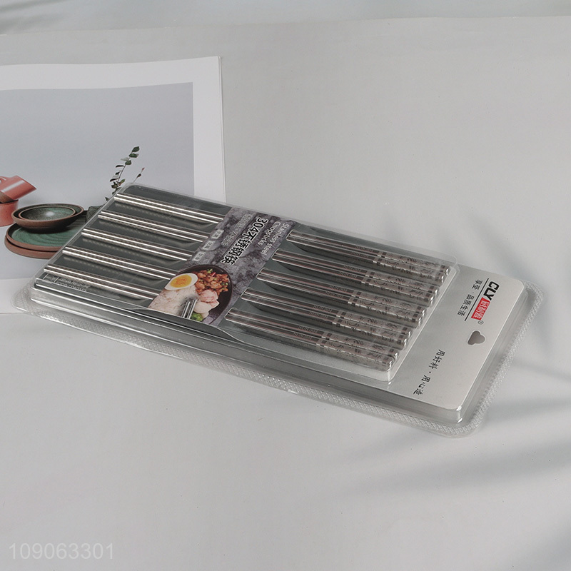 Wholesale 5 Pairs 304 Stainless Steel Chopsticks Engraved Metal Chopsticks Set