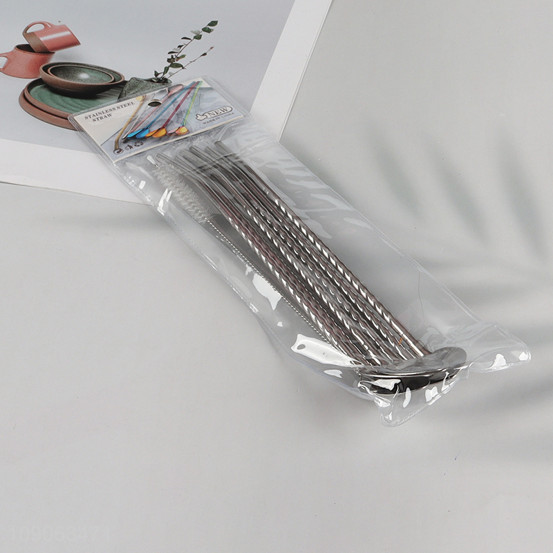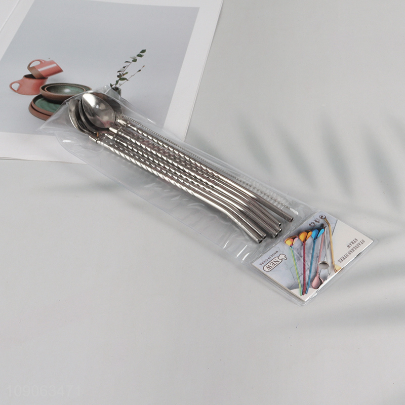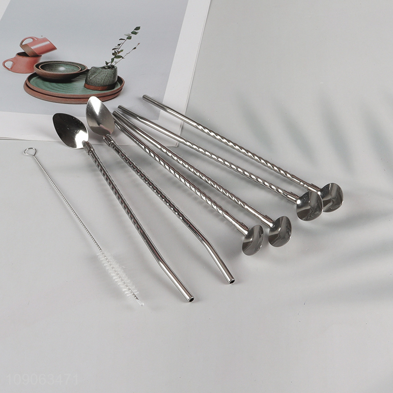 Wholesale 6 Pack Stainless Steel Straw Spoons with 1 Straw Cleaning Brush