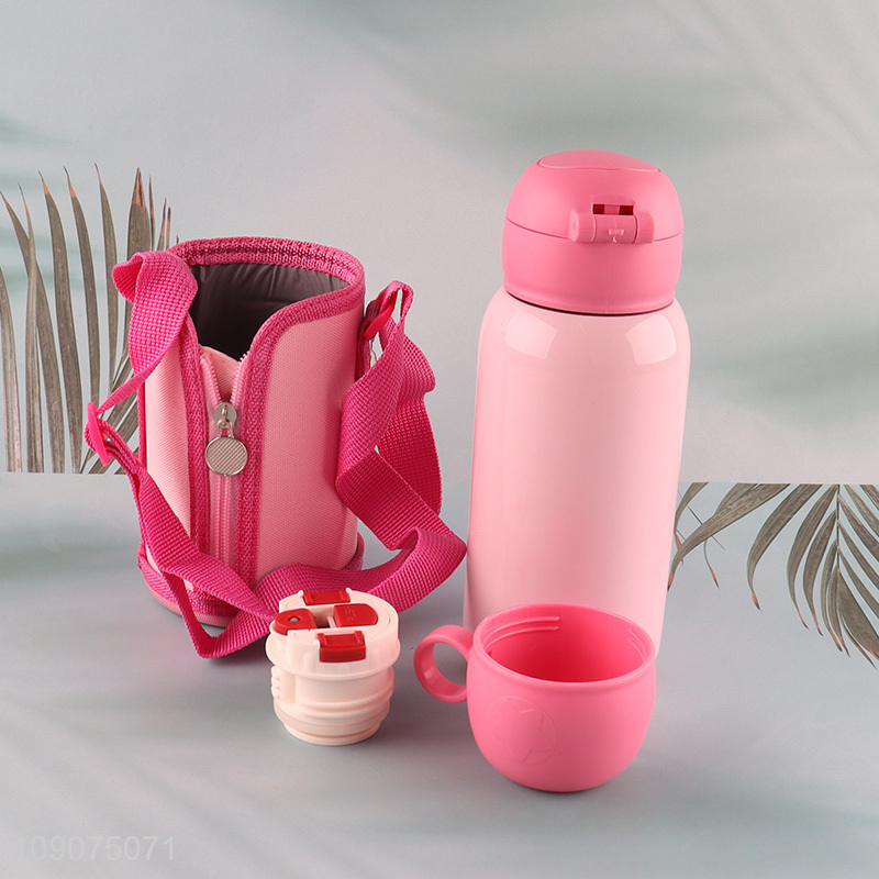 Top selling 550ml pink kids insulated vacuum cup with sleeve
