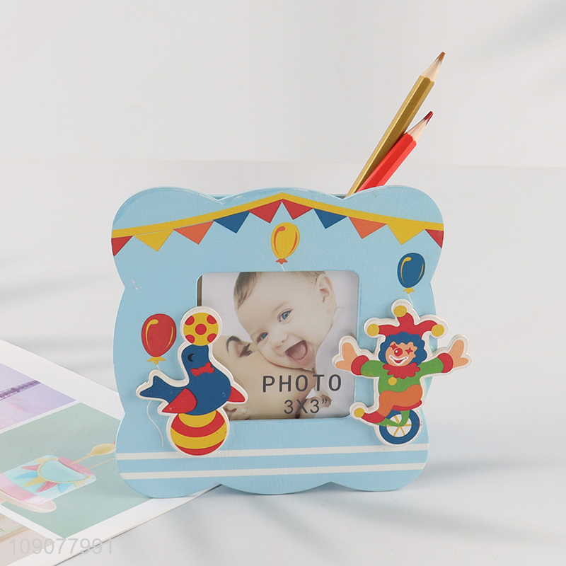 Top products cartoon wooden photo frame picture frame with pen holder