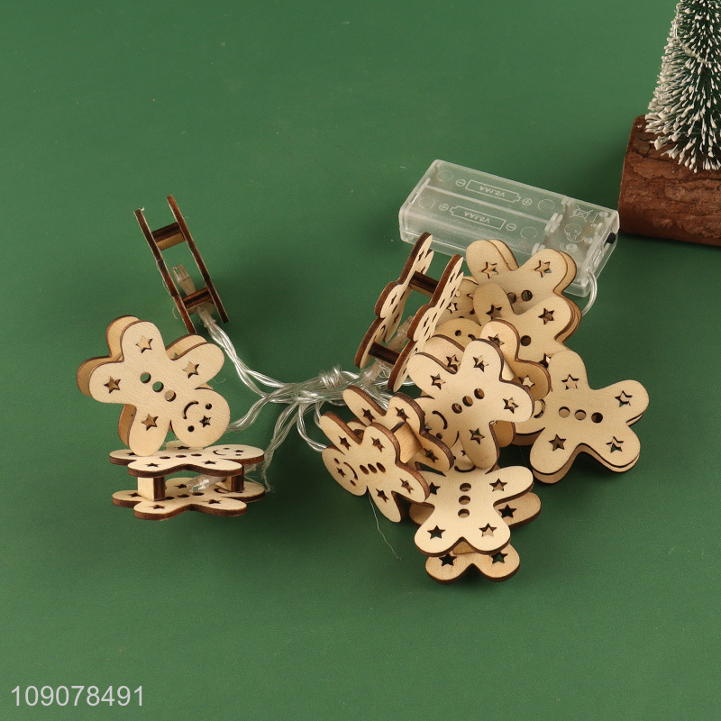 China supplier gingerbread man shape wooden string lights decorative lights