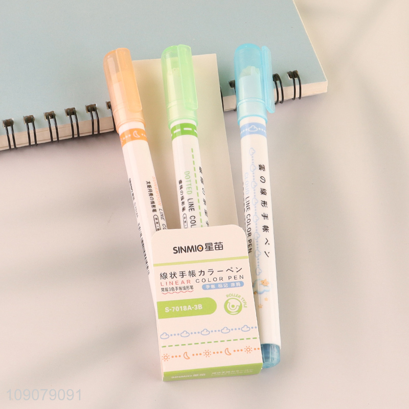 Hot selling 3pcs stationery handbook DIY outline curve pen set