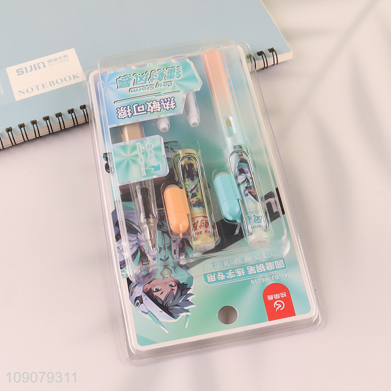 Yiwu market cartoon printed heat-sensitive erasable fountain pen set