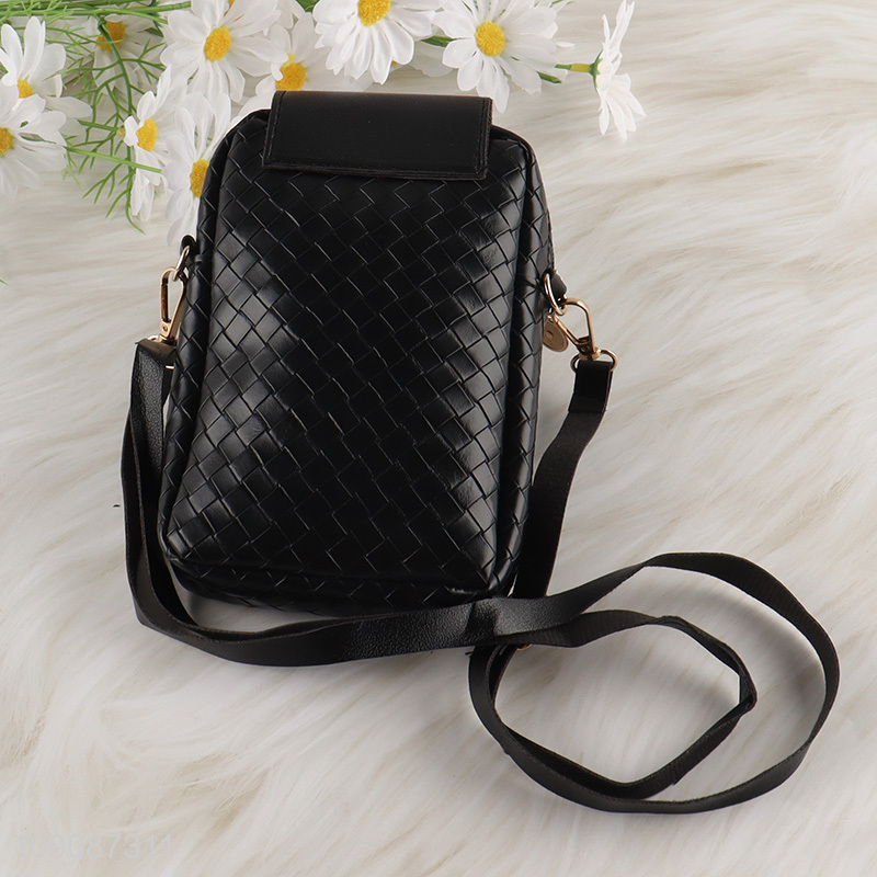 Hot selling fashionable black girls pu messenger bags wholesale
