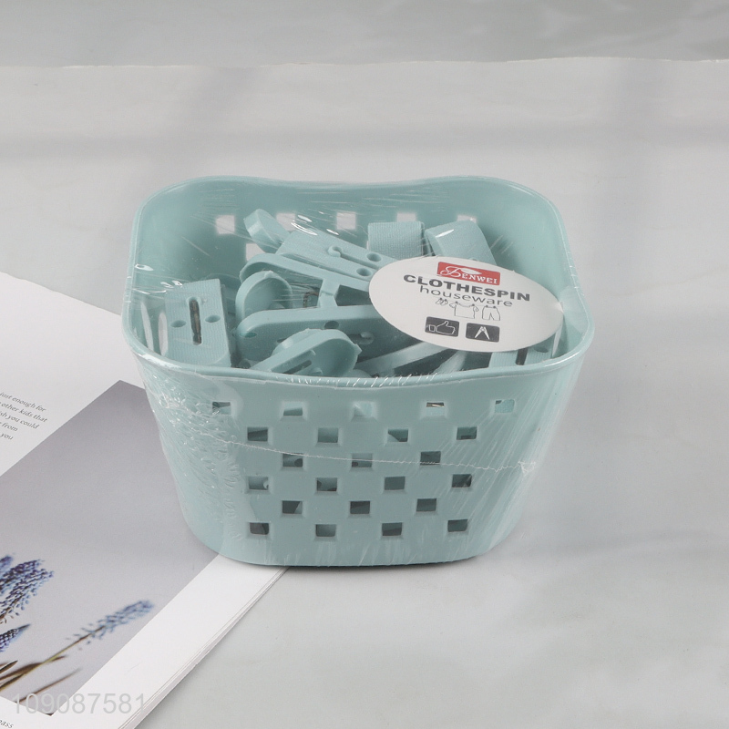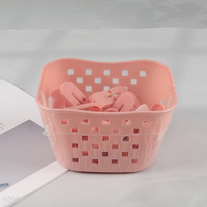 Top selling 24pcs plastic household clothes pegs clothes clips with basket