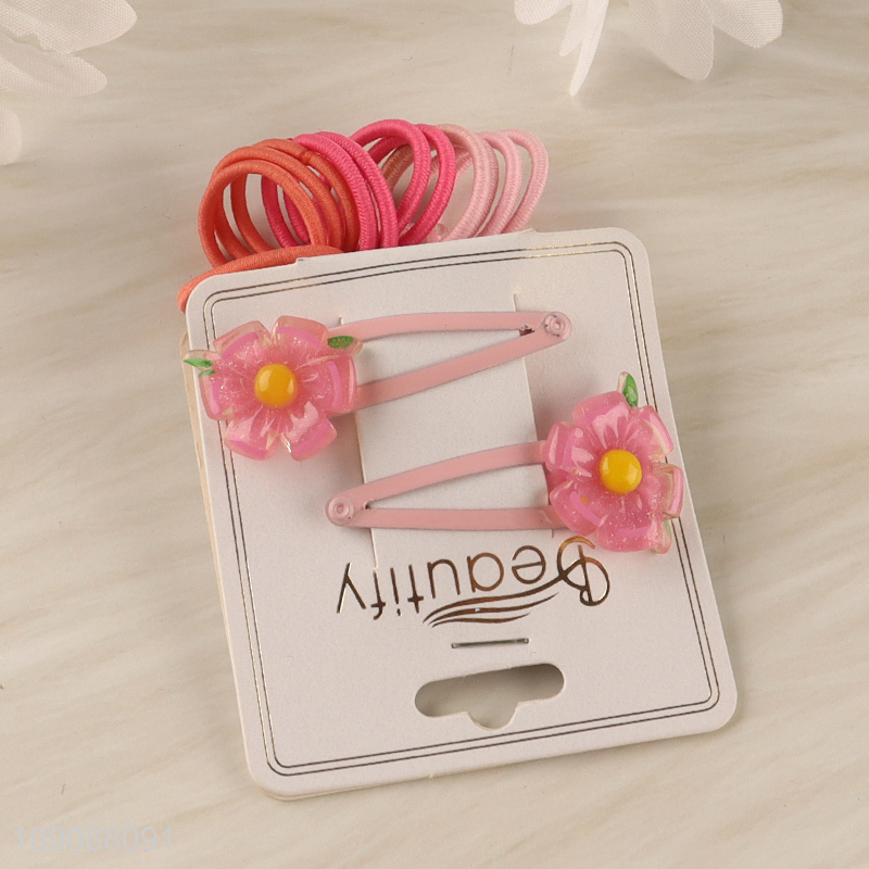Factory Price Kawaii Flower Hair Clips and Hair Ties Set for Kids