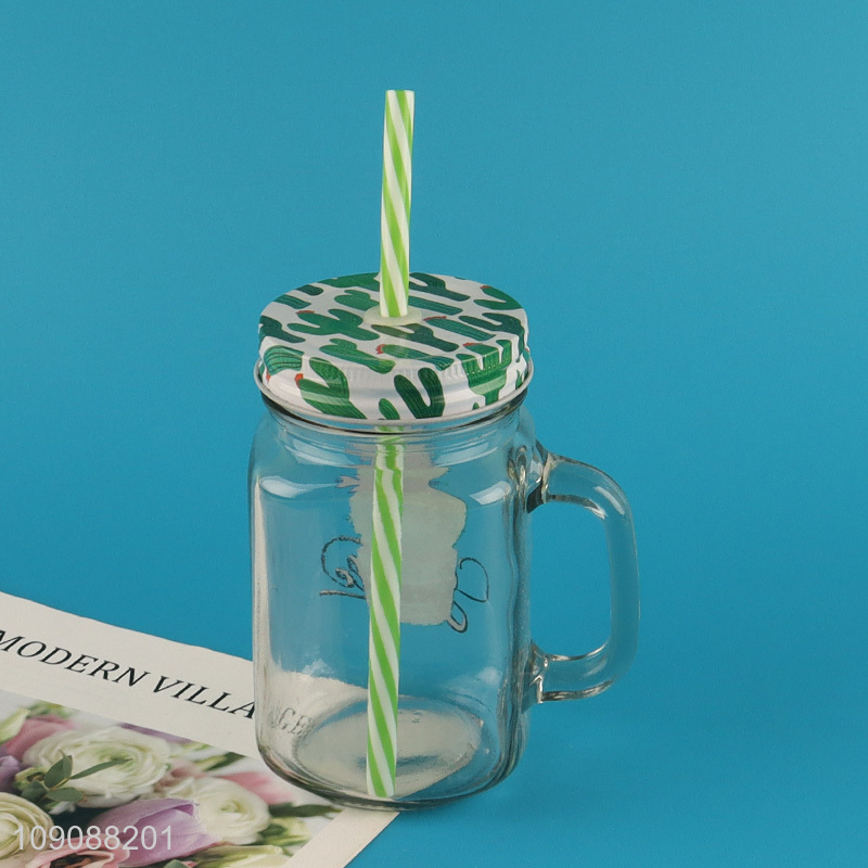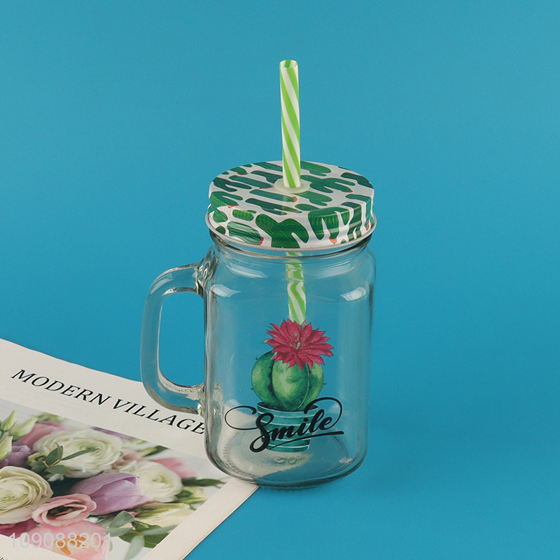 Good Quality Cactus Mason Jar Glass Cup With Lid and Straw