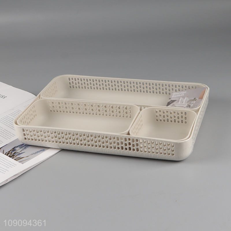 Online wholesale hollow 3compartment desktop organizer storage basket set