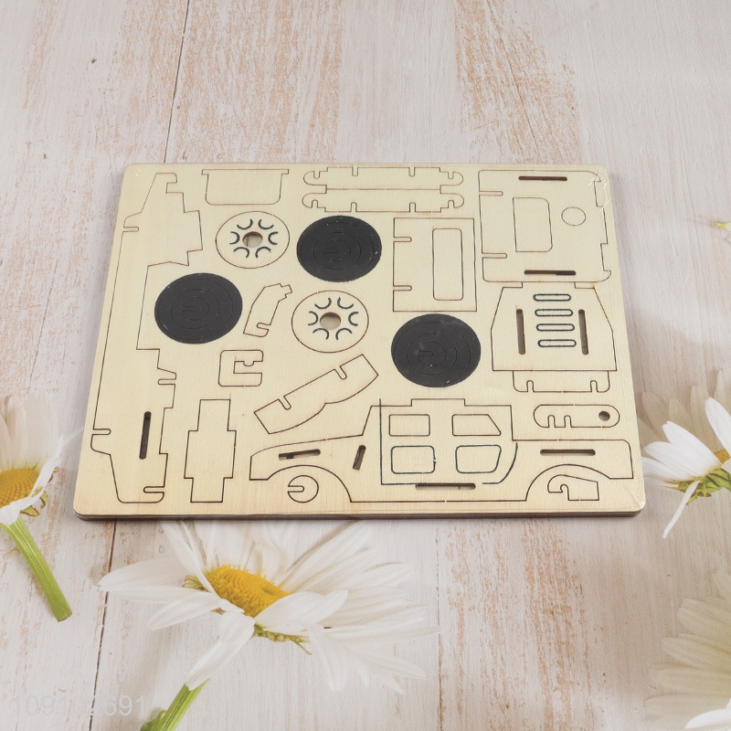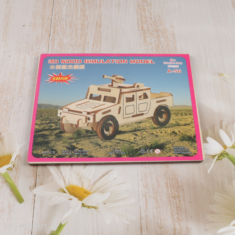 Yiwu market 3d wood simulation model children jeep puzzle toys