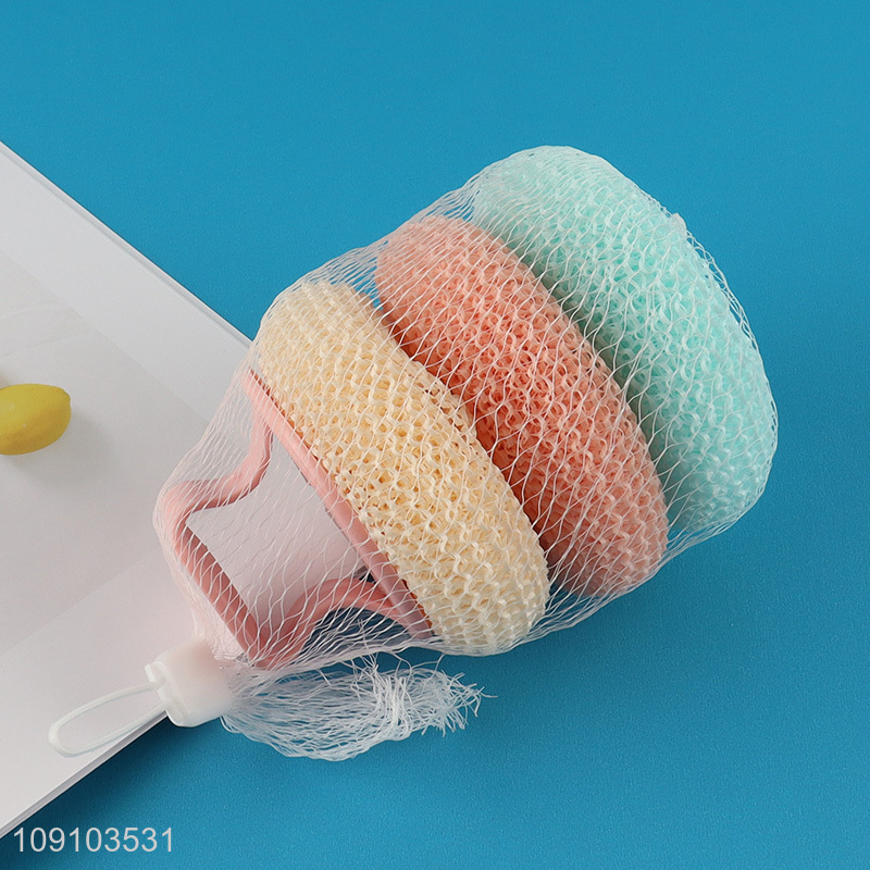 Factory Price 3 Pieces Plastic Mesh Scourers Dish Scrubbers with Handle