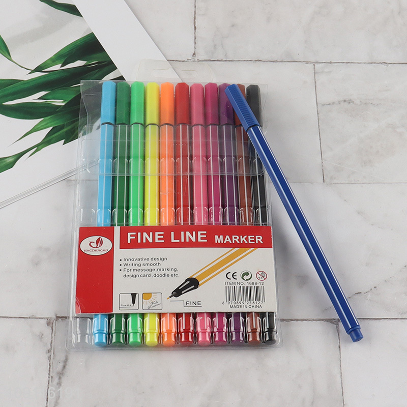 New arrival 12colors water-based fine liner marker set for stationery