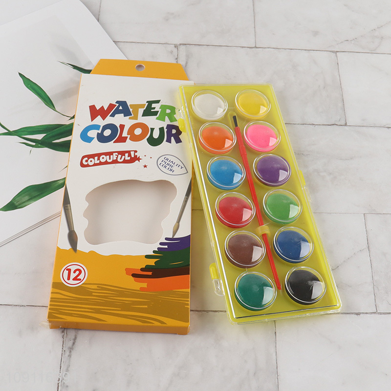 Hot products 12colors non-toxic washable watercolor paint with painting brush