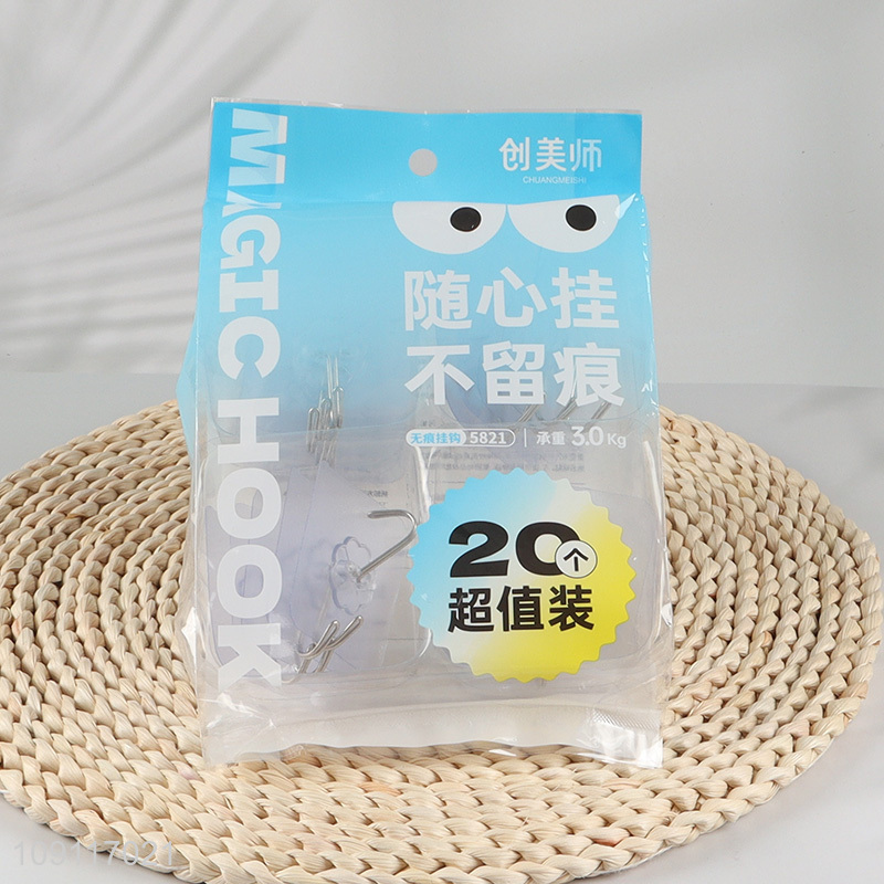 Factory Supply 20PCS Adhesive Hooks Heavy Duty Seamless Wall Hanging Hooks