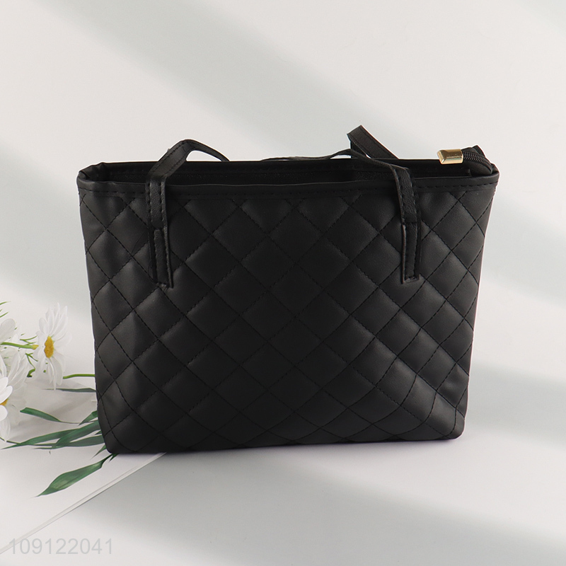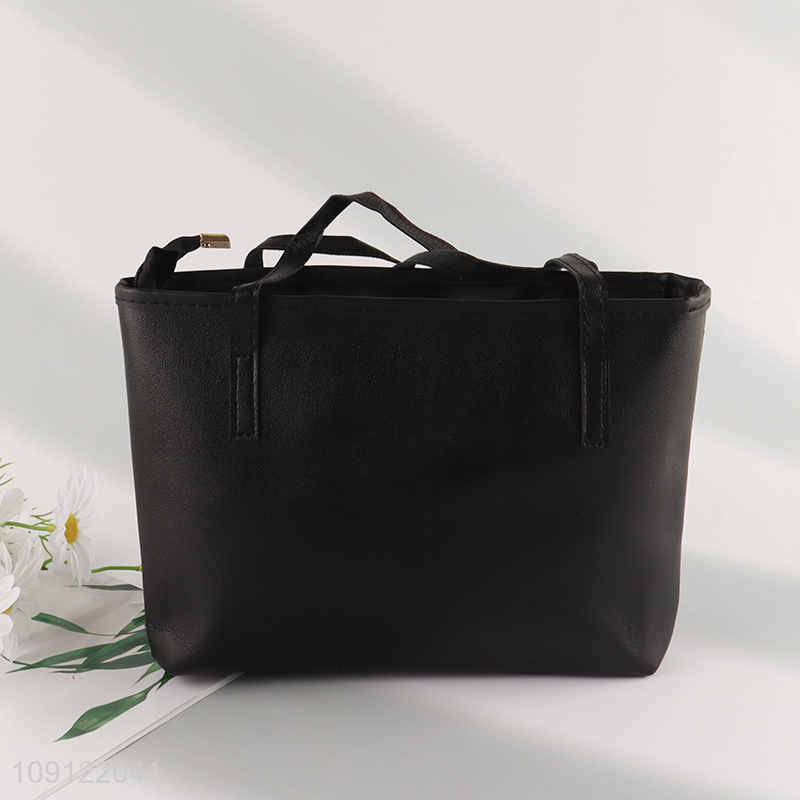 Hot selling black pu leather fashionable ladies handbag wholesale
