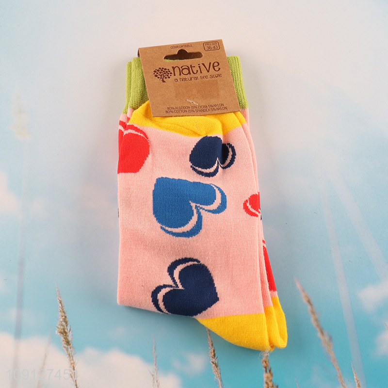 Good price heart printed cotton sock unisex socks for sale