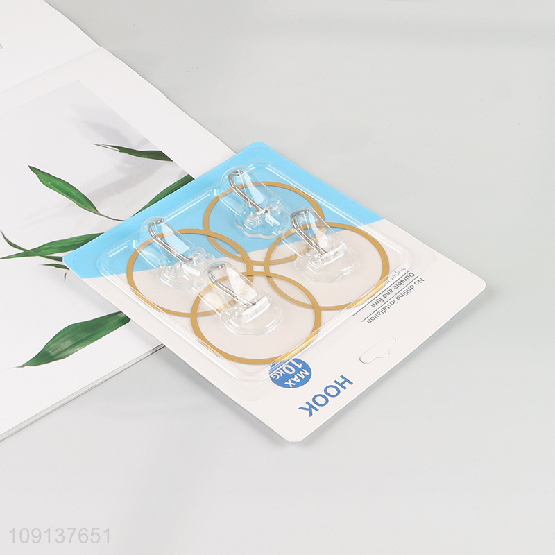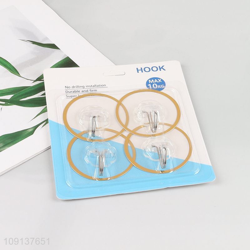 Top selling 4pcs round clear sticky hook wall hook set