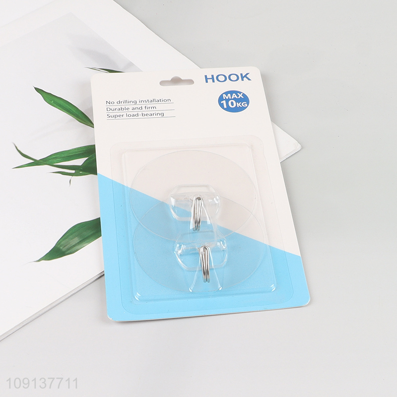 Top selling 2pcs clear household bathroom kitchen sticky hook wall hook