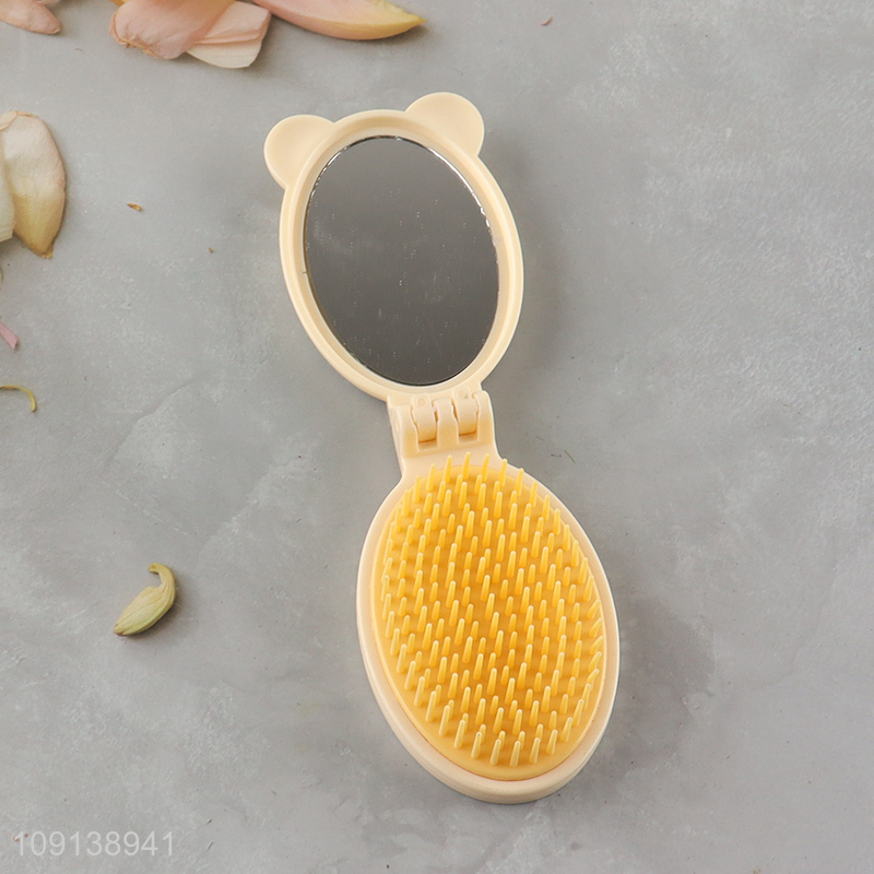 New Arrival Portable Folding Massage Hair Brush with Makeup Mirror
