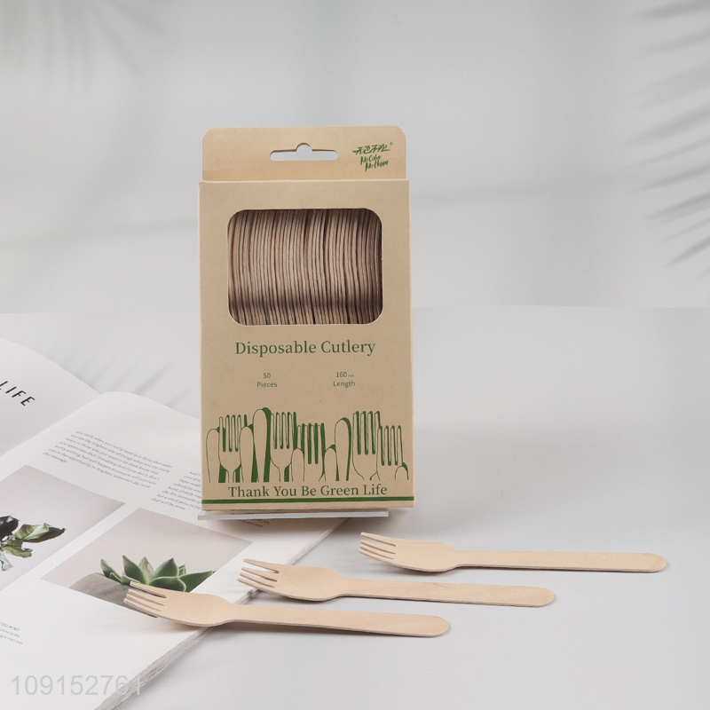 Factory price 50pcs disposable cutlery wooden dinner fork set