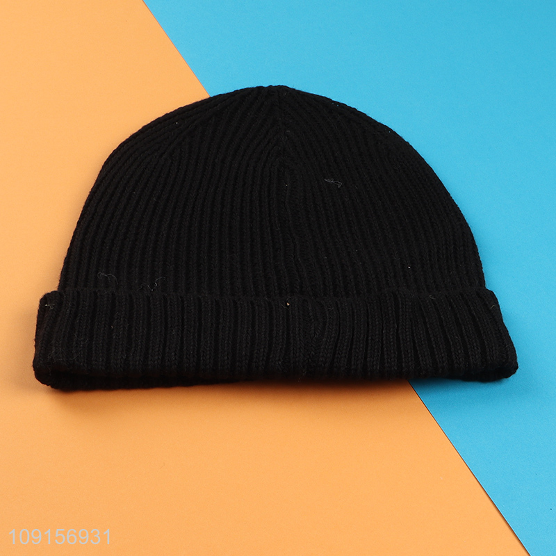 Good selling black winter warmer fashion knitted hat beanies hat