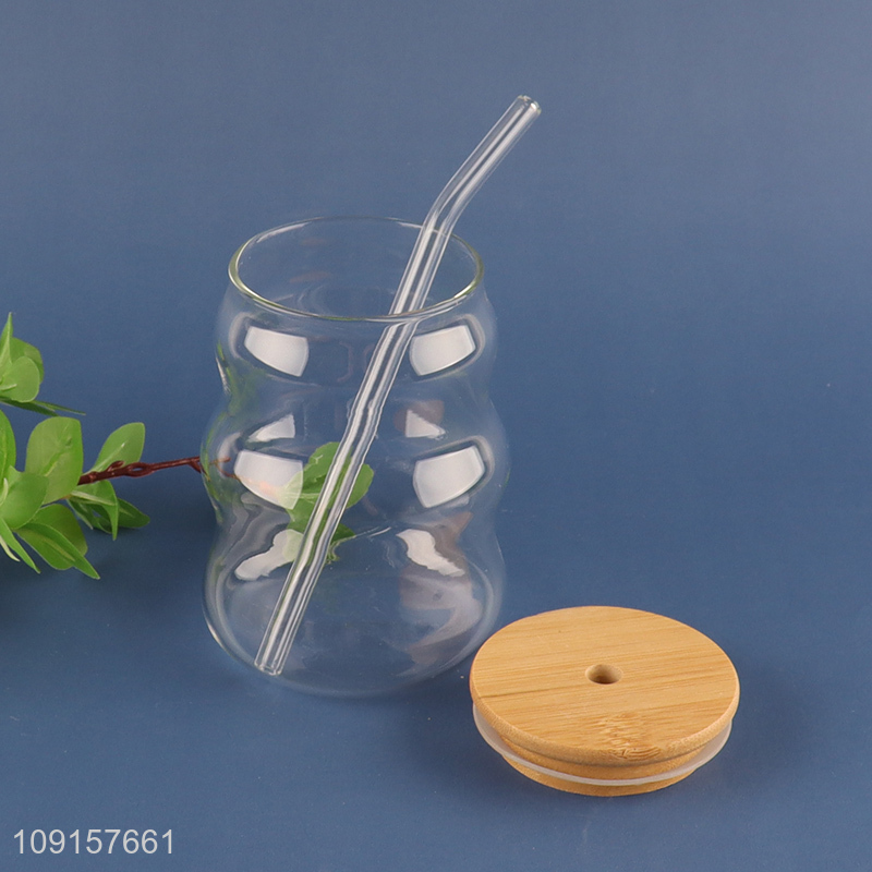 Factory wholesale clear glass 480ml straw cup coffee cup drinking cup with lid