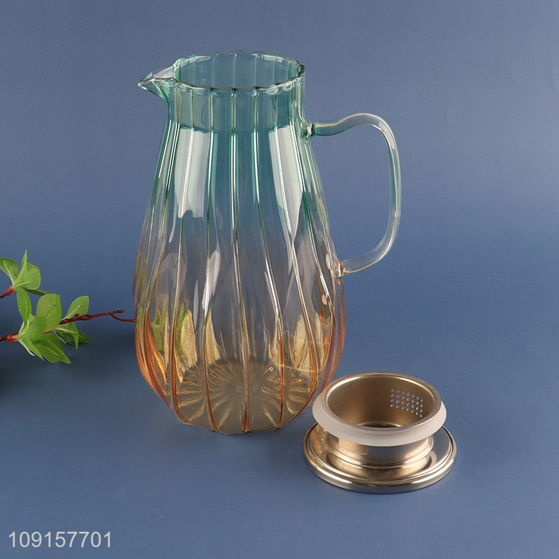 Yiwu market striped glass household tea pot juice pot for sale