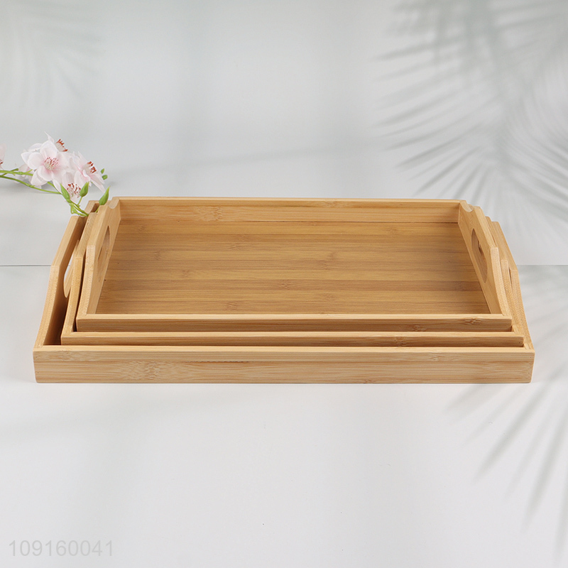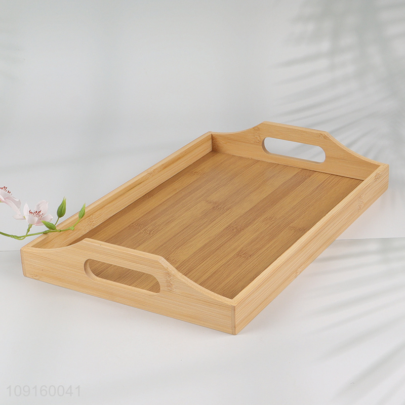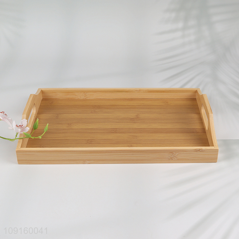 Factory Price Natural Bamboo Serving Tray with Handles for Coffee Table
