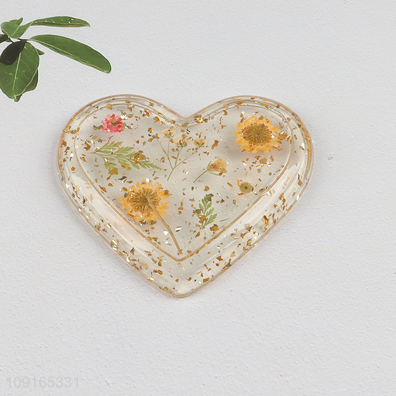 Hot Selling Dried Flower Jewelry Tray Heart Shaped Resin Trinket Tray