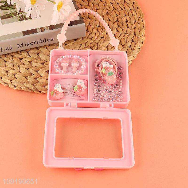 Factory Supply Girls Handbag Hair Clips Hair Ties Bracelet Rhinestones Set
