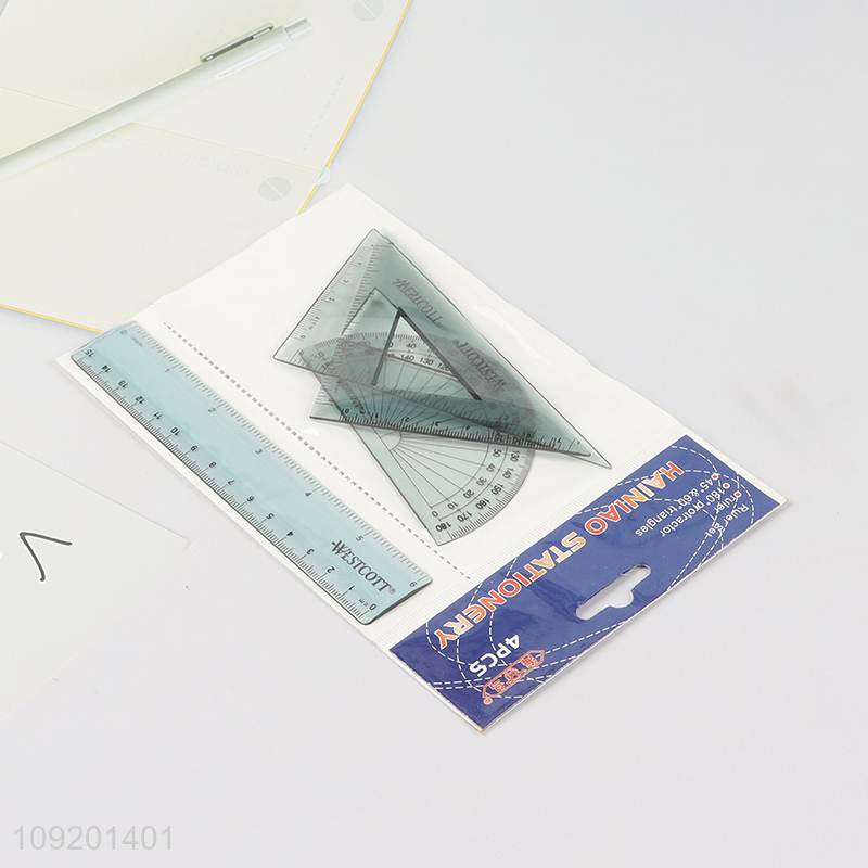 China factory 4pcs plastic students stationery ruler set for sale