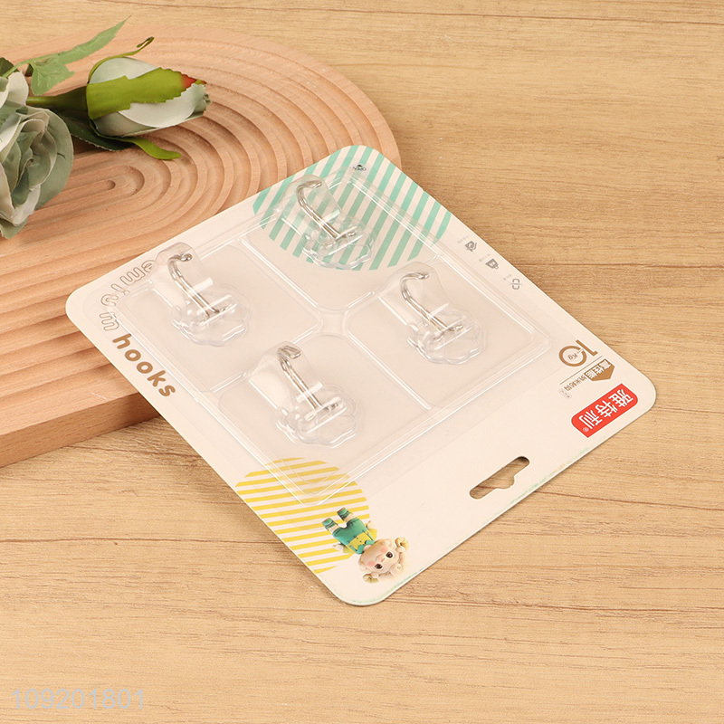 Good price 4pcs clear household sticky hook adhesive hook set