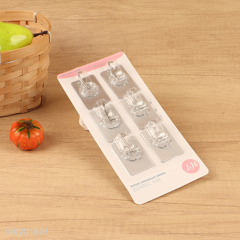 China supplier 6pcs silver rectangle sticky hook adhesive hook set