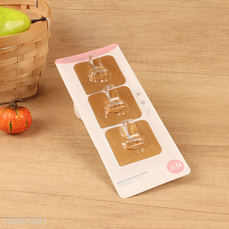 Factory supply 3pcs golden square sticky hook adhesive hook for sale