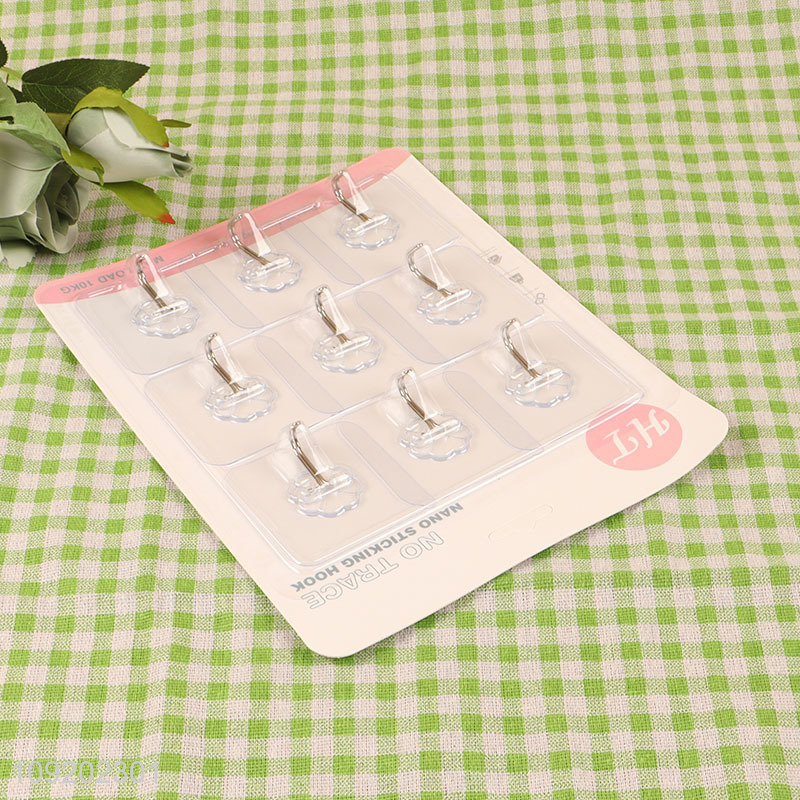 Top quality 9pcs clear square sticky hook adhesive hook for bathroom