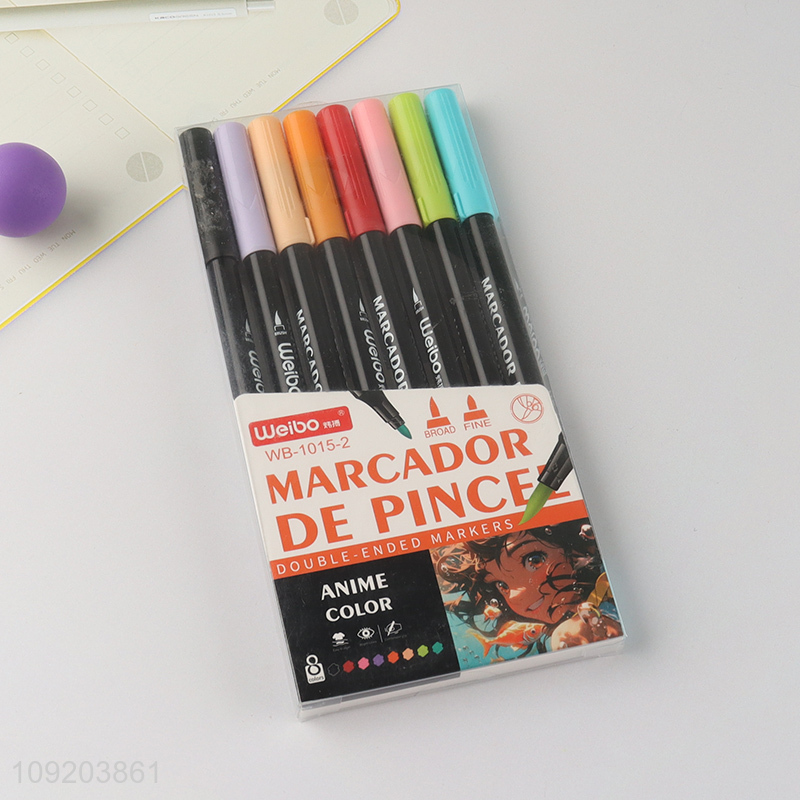 Factory Price 8 Colors Non-Toxic Dual Tip Highlighter Pens for School Students