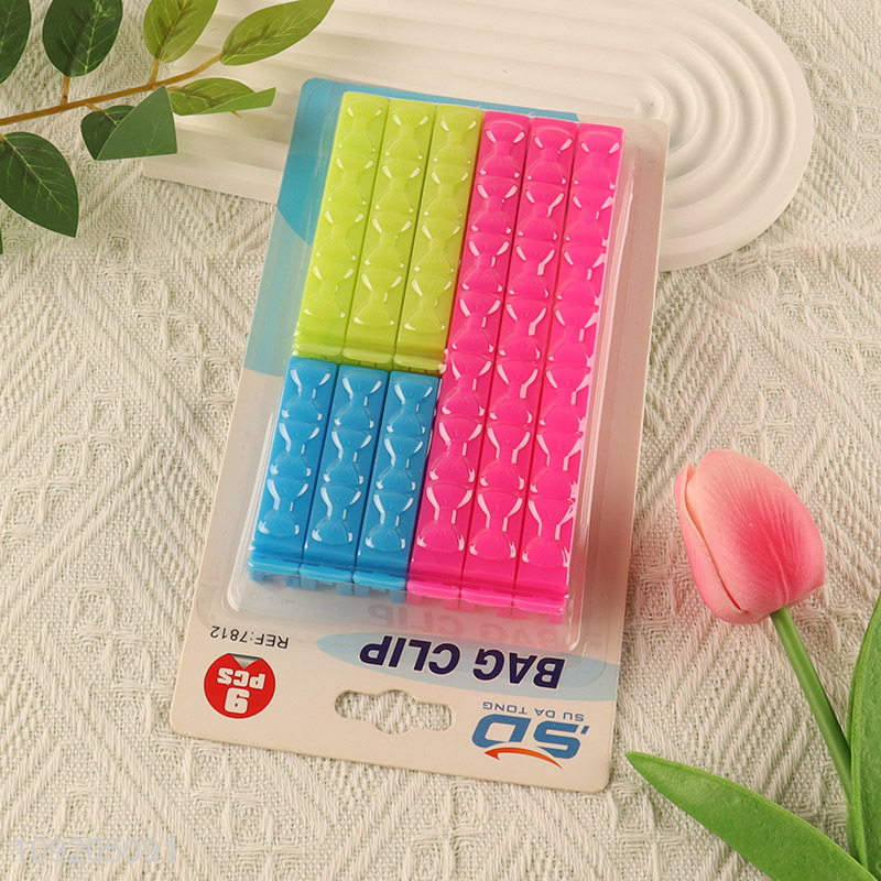 Hot Selling 9PCS Colorful Plastic Food Snack Bread Bag Sealing Clips