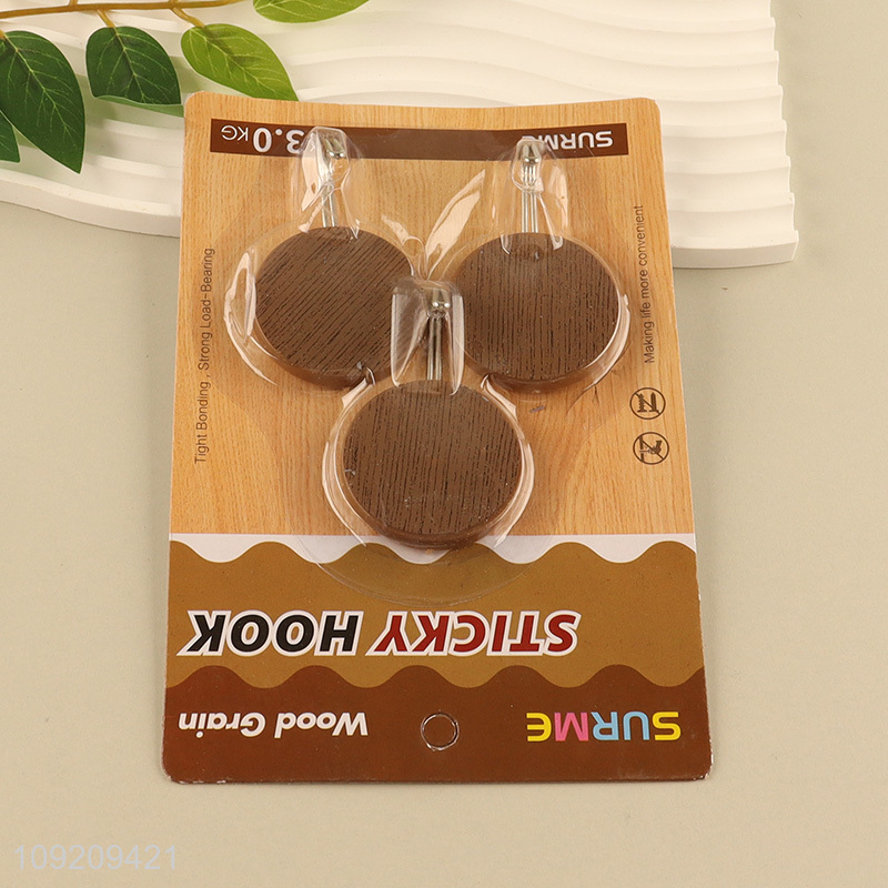 China Imports 3 Pack Wood Grain Adhesive Hooks Towel Coat Hooks