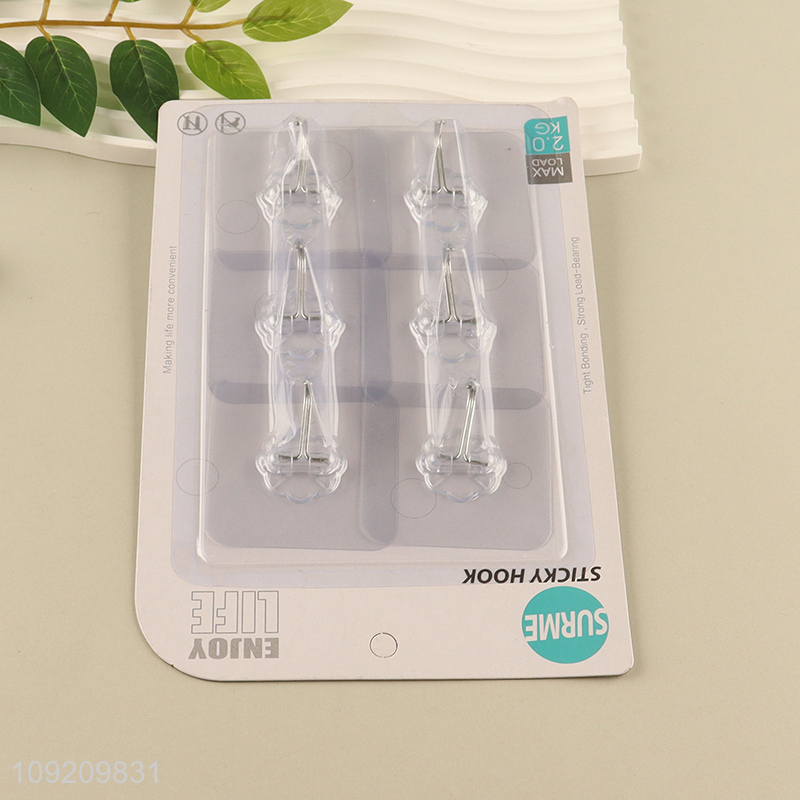 High Quality 6 Pack Clear Wall Hooks Adhesive Towel Hanging Hooks