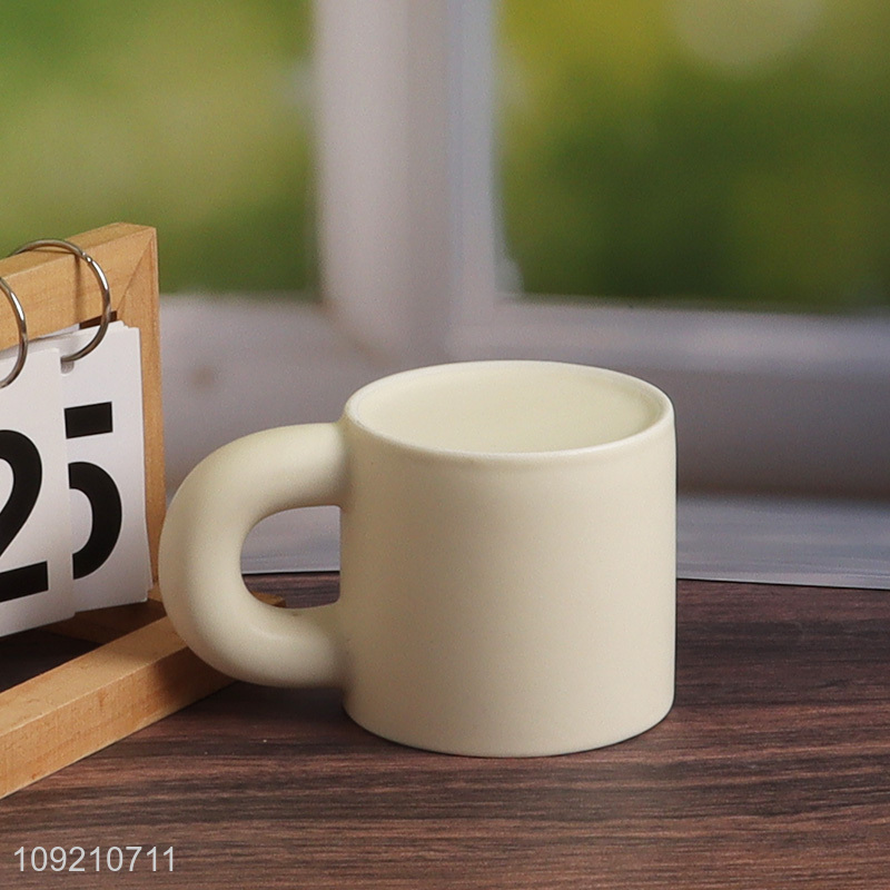 Yiwu market white ceramic 320ml water cup coffee cup with handle