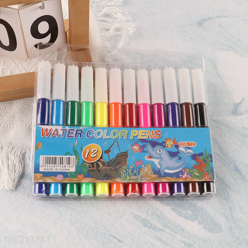 Hot Selling 12 Colors Non-Toxic Watercolor Marker Pens Student School Supplies