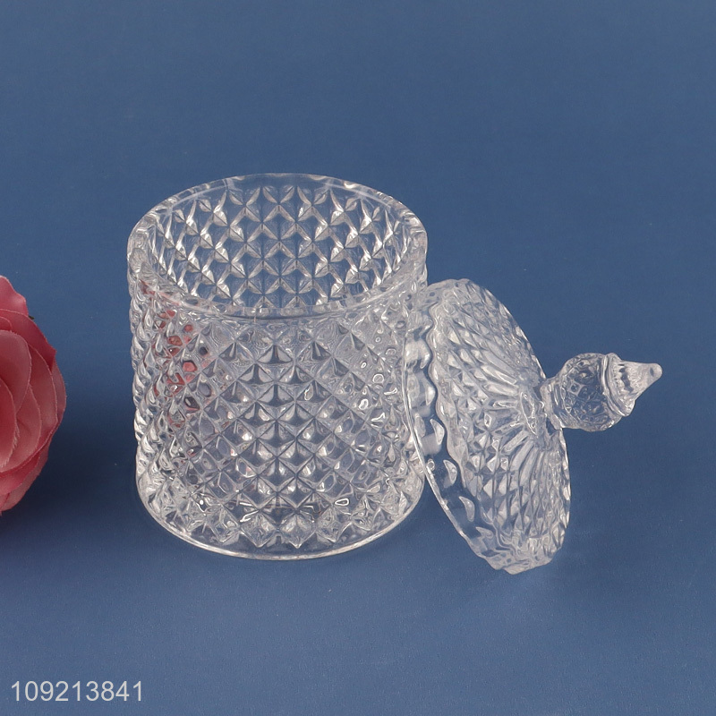 Good Quality Diamond Faceted Crystal Glass Candy Jar with Lid