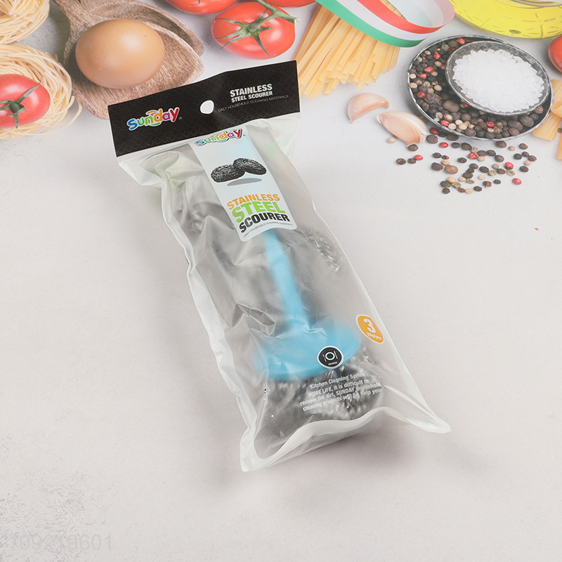 China Imports 3PCS Heavy Duty Steel Wool Scrubbers for Dishes Cleaning