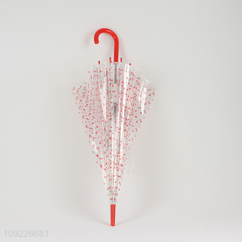 Factory Price Heart Printed Umbrella Clear Bubble Umbrella with Dome Canopy